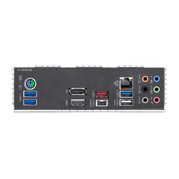 1 x PS/2 keyboard/mouse port 4 x USB 3.2 Gen 1 ports 1 x DisplayPort 1 x HDMI port 1 x USB 3.2 Gen 2 Type-A port (red) 1 x USB Type-C™ port, with USB 3.2 Gen 2 support 1 x RJ-45 port 6 x audio jacks |